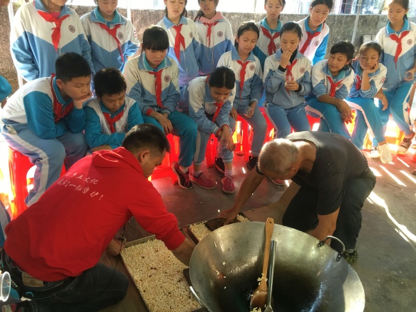 根據中山市少先隊特色社團隊伍建設指導意見,為進一步推動學校少先隊特色社團隊伍的發展,了解中華大地中的優秀傳統文化,加強少年兒童綜合素質培養。經向學校、鎮少工委、鎮文體教育局申報、審批,雍陌小學少先隊特色社團于2018年12月21日下午,到三鄉鎮前隴村尚古傳統文化傳承基地進行了半天的鄉土研學活動。課程有走訪古村、傳統三鄉茶果制作、瀨粉制作、木板刻印年畫和通米制作。