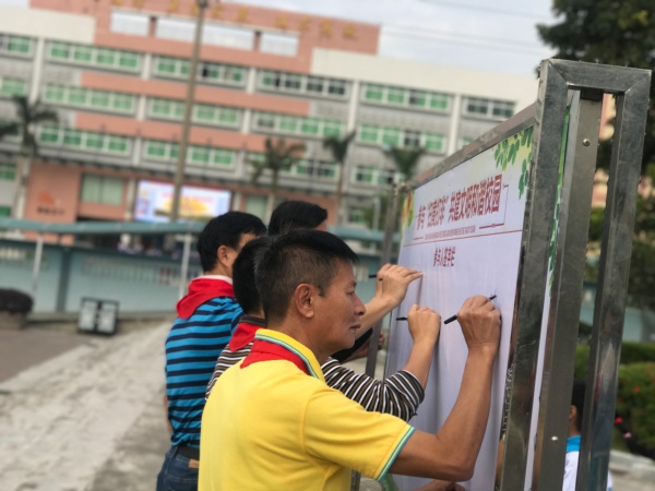 在鏗將有力鄭重的承諾后,由陳苕校長帶領學校的行政團隊進行簽名,各班派五名代表上臺開展承諾簽名活動。在活動結束后,讓高年級的學生在班主任的帶領下全員參與簽名承諾。