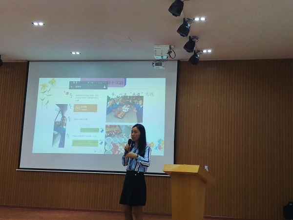首先,彭校長為老師們帶來了主題為《戀上英語,愛上Ta——英語教學四部曲的思考與實踐》的專題講座。彭校長用幽默風趣的語言生動形象的介紹了她在專業成長中的秘訣,圍繞英語教學四部曲:海量閱讀、廣泛學習、勤于實踐、幸福收獲等四個方面詳細了自己在工作、成長過程中的一些具體做法和思考。特別是她的“激勵式教學”:1、一條表揚信;2、一個教育故事;3、一次承諾兌現;4、一個特別的約定;5一份作業合同書;6、一個特別的節日;7、一個你做主的機會;8、一次個性化獎勵……彭校長向大家詮釋了自己獨特風格的英語教學模式,讓在座的老師們受益匪淺。其中“抱團式學習,分層式學習、激勵式教學”等方法給老師們帶來很多的啟發。彭校長還鼓勵老師們要多閱讀,將淵博的知識與英語課堂教學相結合。她說:“教師獲得專業提升的主要途徑就是讀書、讀書、再讀書,別無捷徑。她還進一步強調了教師在成長過程中必須時刻保持教育情懷,必須用心上課、反思,不斷提高自己的教育教學能力和專業學習能力。