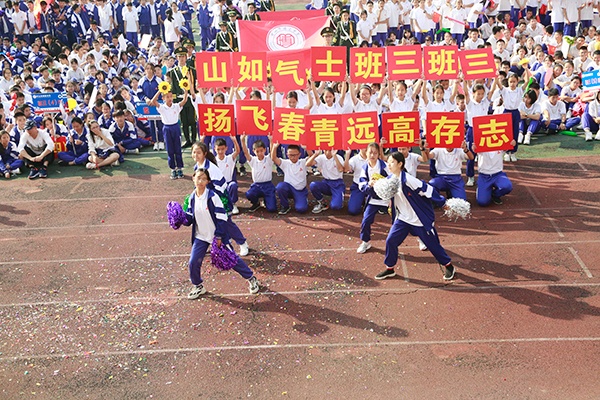 各班方陣入場后,隨著莊嚴的國歌響起,全校師生齊唱《義勇軍進行曲》,雄壯的歌聲響徹運動場的上空。博愛中學(xué)張政校長致開幕詞并預(yù)祝本屆校運會取得圓滿成功。隨后運動員代表和裁判代表上臺宣誓。張政校長宣布校運會正式開幕,整個田徑場一片歡呼。