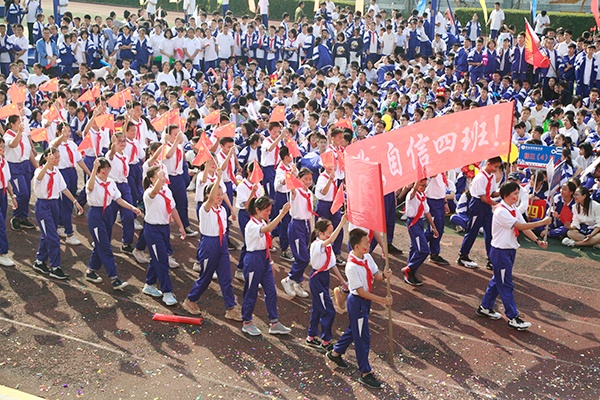 在各班的入場式上,學(xué)生們臉上洋溢著明媚的笑意,音樂響起,他們的步伐整齊劃一,動作鏗鏘有力,臉上滿是嚴肅認真。各班的入場式表演各有千秋:有抱著籃球的運動健兒們;有一襲碧衣羅裙的溫婉姑娘;有盡情舞動的雄獅……數(shù)不勝數(shù),每一同學(xué)都展現(xiàn)出最好的風(fēng)采。 看到同學(xué)們喜悅的笑容,聽到主席臺上的陣陣掌聲,同學(xué)們的雙眼因滿意而變得熠熠生輝。多姿多彩的表演,充分展現(xiàn)了博愛學(xué)子的活力。