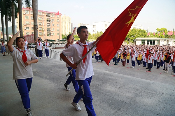 建隊儀式中,各中隊輔導員和少先隊員們素質優良、作風正派,莊重而自豪,胸前飄揚的紅領巾,揚起的是一片向黨的童心,是作為新時代好隊員的自豪,是作為共產主義事業接班人的光榮。