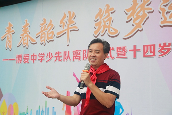 6月13日,是一個博愛中學初二年級少先隊員永遠銘記的日子,因為就在今天,他們光榮地離開少先隊組織,向更高的目標前進。這是他們成長道路上的一個里程碑,也是他們邁向青春的第一步。