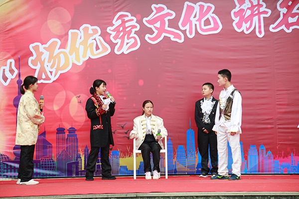 參加本次決賽共有十二支隊伍,選手們表演人數之多,服裝、道具鮮艷,吸引觀眾眼球,精準有趣的語言、真摯的感情、惟妙惟肖的表演,將一個個名著故事中蘊涵的大道理演繹的精彩絕倫,整個比賽贏得了在場眾的一陣陣雷鳴般的掌聲,選手們的精彩表現為觀眾奉獻了一場視聽盛宴。經過一番激烈的角逐,二(5)班的節目《活著》,二(10)班的節目《三打白骨精》,二(6)班的節目《智取生辰綱》獲得一等獎。