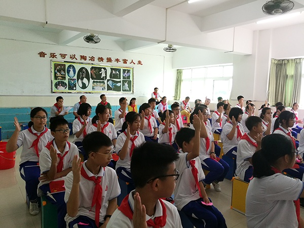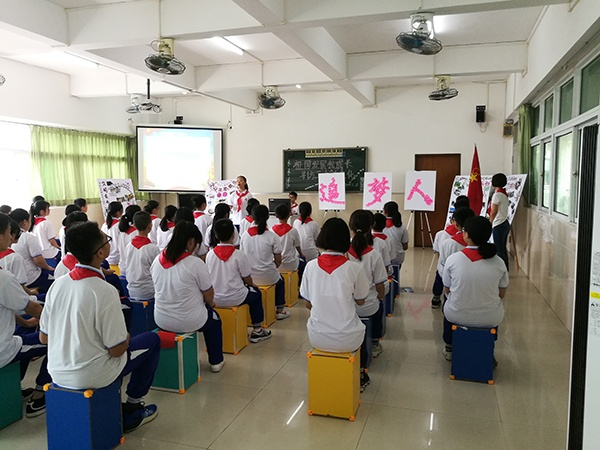 調研組查看了團委室、隊部室、團校、課室,對學校團少活動場所的合理設置充分肯定和贊許。聽取了初一(3)班和初二(5)班的隊課。初一(3)班中隊的隊活動課,在李敏老師的精心指導下;初二(5)班中隊活動課,在陳攸秀老師的反復磨課、精心準備各種素材下,二個班學生的精彩演繹,聽課的領導和老師被感動得熱淚盈眶。精彩的課件加上亮瞎眼的展板和創意的“追夢人”,讓我們的評委大開眼界。