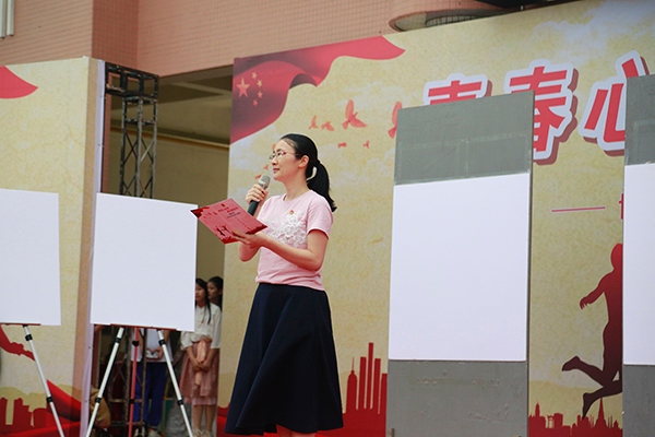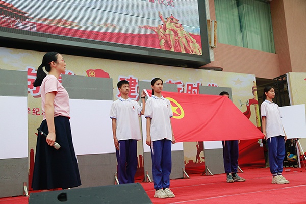在全校師生的見證下,由團委書記歐陽佩紅宣老師宣布入團決議、宣讀新團員名單,74名優秀學子在主席臺前整齊排列,伴著“中國共青團團歌”,他們莊嚴肅穆,面向隊旗。佩戴團徽,從同學們的自信而幸福的臉上可以看出,這一刻他們倍感自豪。在三(1)團員代表方玲同學的帶領下,舉起右手,面對鮮艷的團旗,莊嚴宣誓:我志愿加入中國共產主義青年團 ,堅決擁護中國共產黨的領導,遵守團的章程,執行團的決議。履行團員義務,嚴守團的紀律,勤奮學習,積極工作,吃苦在前,享受在后,為共產主義事業而奮斗! 相信他們邁出成長中的堅實一步,堅定青春信念,更加努力學習、全面發展,用實際行動譜寫人生絢麗的青春之歌。