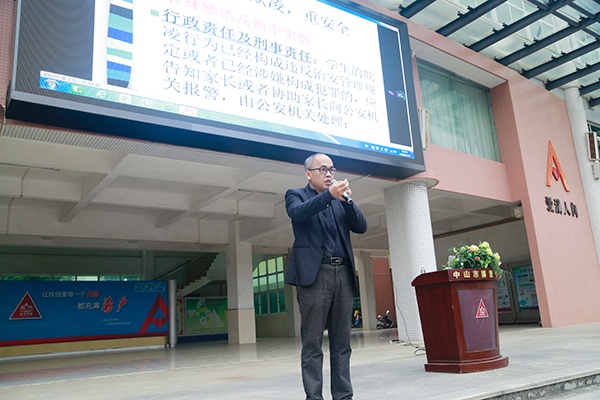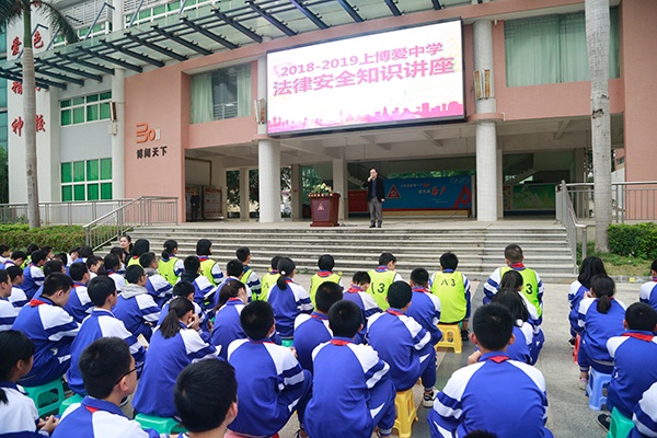 為增強學生的安全意識,提高學生的法律意識,營造文明、平安、和諧的校園。2019年1月10日下午,博愛中學邀請了廣東銘興律師事務所熊震世律師為全校師生舉行了一場別開生面的法制安全教育講座。