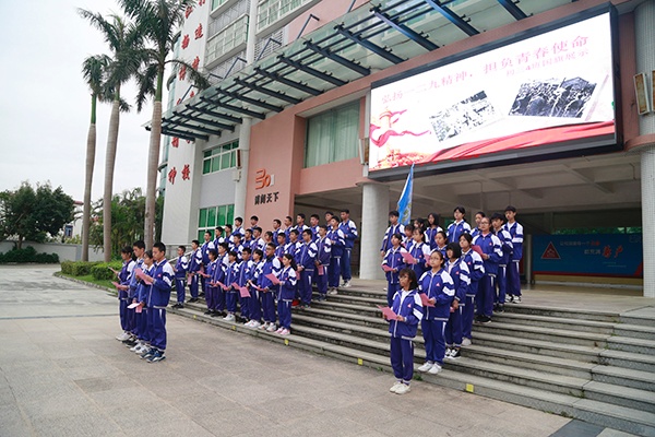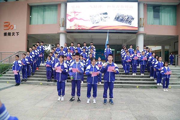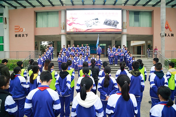 12月10日由中山博愛初級中學德育處主辦,初三4班承辦的以“弘揚一二九精神,擔負青春使命”為主題的升旗儀式于博愛初級中學升旗廣場舉行。
