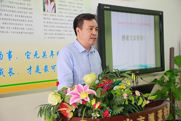 隨后,由文體教育局梁添帶書記發言。梁書記對“尋道”班主任工作室的成立表示祝賀,并指出:班主任工作室的成立對于提升學校班主任隊伍管理能力的重要性,希望班主任工作室各成員能夠明確職責,傳播先進的班級管理經驗和方法,充分發揮班主任工作室的示范、引領、輻射、指導作用,當好學校班主任隊伍中的“發動機”。