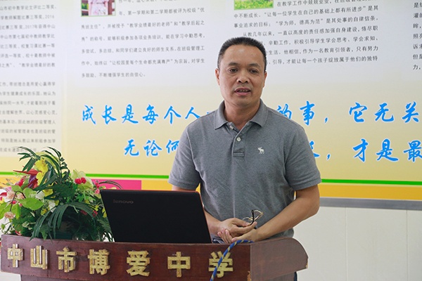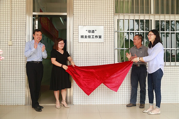 最后,由文體教育局梁添帶書記、林雪萍老師、張政校長和陳攸秀老師為班主任工作室揭牌,標志著博愛中學“尋道”班主任工作室正式成立。