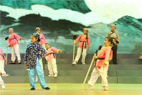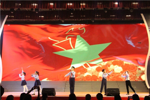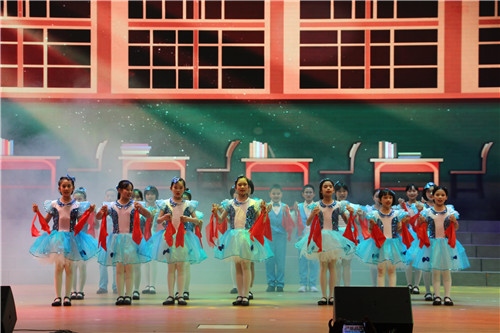 “紅星閃閃放光彩,紅星燦燦暖胸懷……”歌舞劇《經典唱不停》,朗誦《懷念小英雄》說出了王二小、小兵張嘎等小英雄的英勇事跡,不斷激勵自己向前進步、爭做一名合格的新時代少先隊員。