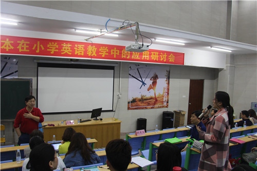 劉兆義老師從主題式教學途徑切入,解釋了以內容為載體,文本內涵為主體,讓學生在良好的、具有高動機環境中進行語言學習的主題式教學途徑的核心內容。現場以教材為例,結合講課實例詳細講解了繪本教學可以從緊扣主題、創設情境、基于語篇、凸顯活動、注重過程和強調實踐6方面開展教學活動。并指出小學英語繪本教學存在局限于講讀提問、重詞語學習和操練句型結構等問題。在教育信息化2.0時代,主張老師們關注英語新課程標準和國家政策,緊跟時代信息,希望老師們“Do more ,know more , be more”。
