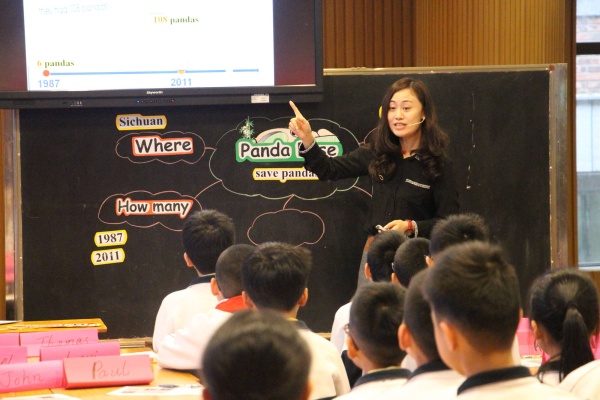上午小學的培訓活動由三鑫小學部自主實驗部歐陽志華主任主持,小學部李春華老師與三鑫六年級21班的同學共同帶來一節六年級英語閱讀展示課《Feeling Excited》。李老師的課圍繞熊貓數量在中國的演變,聯系到野生動物保護的話題,內容準備充分,課堂生動有趣。
