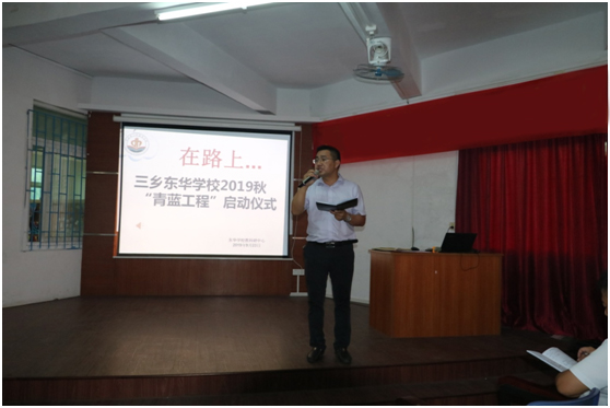 9月 23日晚,東華學(xué)校全體教師在學(xué)校報告廳齊聚一堂,參加“在路上……”東華學(xué)校2019年秋青藍工程啟動儀式,本次活動由學(xué)校教研室何傳偉主任主持,徐文校長參加活動。