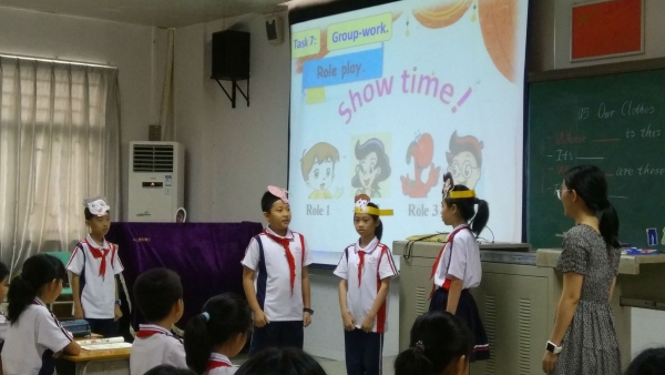 接下來登場(chǎng)的是光后中心小學(xué)的劉貴夏老師。她帶來的課例是四年級(jí)Unit5 Our Clothes(Story)部分。劉老師先用一首歌謠帶領(lǐng)學(xué)生熱身。富有節(jié)奏感的歌謠,劉老師加上了動(dòng)作,帶著學(xué)生唱跳起來,既激發(fā)了學(xué)生的學(xué)習(xí)興趣,又讓學(xué)生對(duì)本節(jié)課相關(guān)的知識(shí)點(diǎn)進(jìn)行了溫習(xí)和鞏固。劉老師的教學(xué)設(shè)計(jì)貼近生活,真實(shí)性強(qiáng);整節(jié)課采用任務(wù)型教學(xué),教學(xué)目標(biāo)明確,課程設(shè)計(jì)層次分明,重難點(diǎn)突出。本節(jié)課中,劉老師采用了多種教具輔助教學(xué),形式多樣且運(yùn)用得當(dāng),設(shè)計(jì)十分巧妙,值得借鑒。