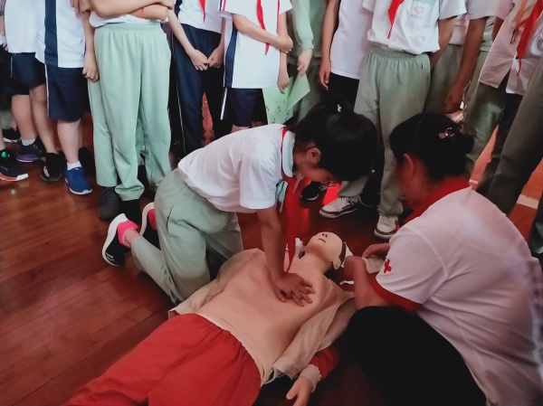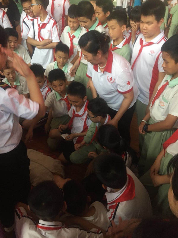 接下來,醫(yī)療輔助隊的同學與紅十字會的老師們一起到各班中去,與隊員們一起體驗了剛剛學習到的心肺復(fù)蘇知識。隊員們認真演練,能做到學有所獲。