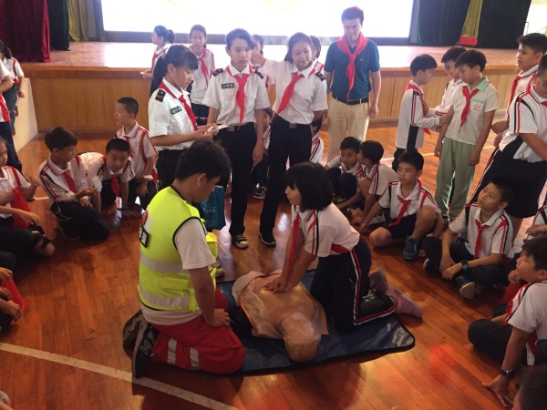 2019年4月8日,光后中心小學五,六年級的同學齊聚彩虹館,參加校園心肺復(fù)蘇推廣活動。