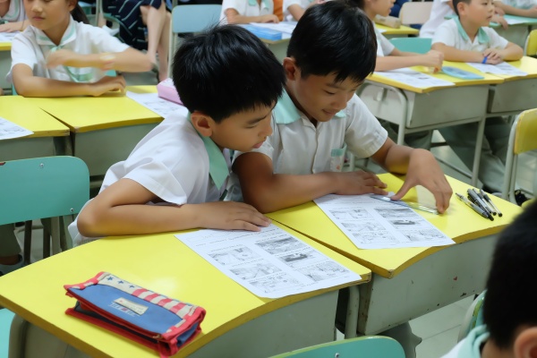 接下來(lái)觀摩的第二節(jié)課是南頭三鑫學(xué)校陳爾琪老師團(tuán)隊(duì)的李博老師主講的繪本課《House for sale》。李老師通過(guò)課前熱身小游戲與學(xué)生互動(dòng),充分調(diào)動(dòng)了課堂氣氛;通過(guò)設(shè)置小組評(píng)價(jià)機(jī)制,提升了學(xué)生的課堂參與度。李老師風(fēng)趣幽默,親和力強(qiáng),設(shè)計(jì)理念新穎,教學(xué)目標(biāo)明確,教學(xué)方法靈動(dòng),課堂氣氛活躍。