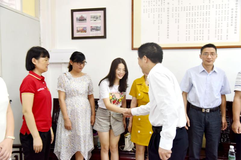 在學校會議室,彭聰恩區(qū)長一行與華僑中學高三年級教師代表進行了親切的座談和交流。彭區(qū)長與參會教師代表一一握手,并熱情祝賀他們在2019年高考中取得優(yōu)異成績。