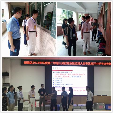 為確保順德區(qū)2018―2019學(xué)年第二學(xué)期義務(wù)教育階段期末教學(xué)質(zhì)量監(jiān)測(cè)順利開(kāi)展,有效落實(shí)各項(xiàng)考務(wù)工作要求,2019年7月8日至9日,以區(qū)教育局張毅副局長(zhǎng)為領(lǐng)隊(duì)的巡考組(巡考組成員由區(qū)教育局基礎(chǔ)教育科、教育督導(dǎo)室、招生考試和審批服務(wù)科以及區(qū)教育發(fā)展中心的人員組成),聯(lián)同鎮(zhèn)(街道)間互派巡考代表,分成10個(gè)巡查小組,分赴區(qū)內(nèi)10個(gè)鎮(zhèn)(街道)的中小學(xué)和區(qū)屬學(xué)校,對(duì)四至八年級(jí)期末教學(xué)質(zhì)量監(jiān)測(cè)考務(wù)工作情況進(jìn)行實(shí)地巡視檢查。