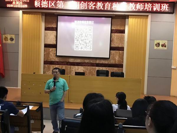 為提高區中小學開展創客教育的實施能力,培養優秀創客教育教師,進一步推進創客教育在全區中小學的普及與開展,順德區教育發展中心舉辦了第二期創客教育種子教師培訓,分別于7月4、5日和10、11日在大良順峰中學和勒流職業技術學校開班,全區共有200多名中小學教師前來參與。培訓的主要內容是開源硬件和米思齊基礎入門。