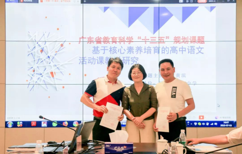 在接下來的開題報告會中,順德一中黃濱老師和李兆基中學熊潔老師分別作了《基于學科核心素養的高中語文活動課教學行動研究》和《高中作文教學中高階思維培養探究與實踐》的開題報告,從研究意義、研究理據、研究內容、研究方法、組織分工、進度安排、經費預算等方面進行詳細匯報。