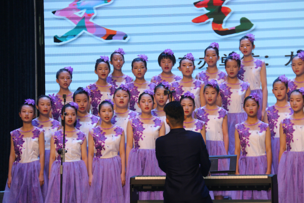 我校合唱隊姑娘們穿著淡雅的裙裝,自信優雅地站在表演臺上,指導老師唐小林風度翩翩地彈奏鋼琴,“啊,卓瑪……你像一只自由的小鳥歌唱在那草原上,你像春天飛舞的彩蝶,閃爍在那花叢中……”豐華中學合唱隊用飄逸靈動的聲音演繹了一首《卓瑪》,歌唱聲如同歌詞:像一杯甘甜的美酒,醉了太陽,醉了月亮!陶醉了在場所有人!緊接著,場景從遼闊飄逸的草原轉移到迷蒙月光下的果園里,合唱隊員們一首《葡萄園夜曲》,唱出了寧靜的夜空下異鄉人對家鄉葡萄園的無限思念。優美的旋律、獨特的唱風、天籟的聲音以及師生精準的配合,令所有評委和觀眾如癡如醉,嘖嘖稱贊。最終獲得初中組唯一一個一等獎!唐小林和全波兩位老師獲得“優秀指導老師獎”稱號!真是可喜可賀!
