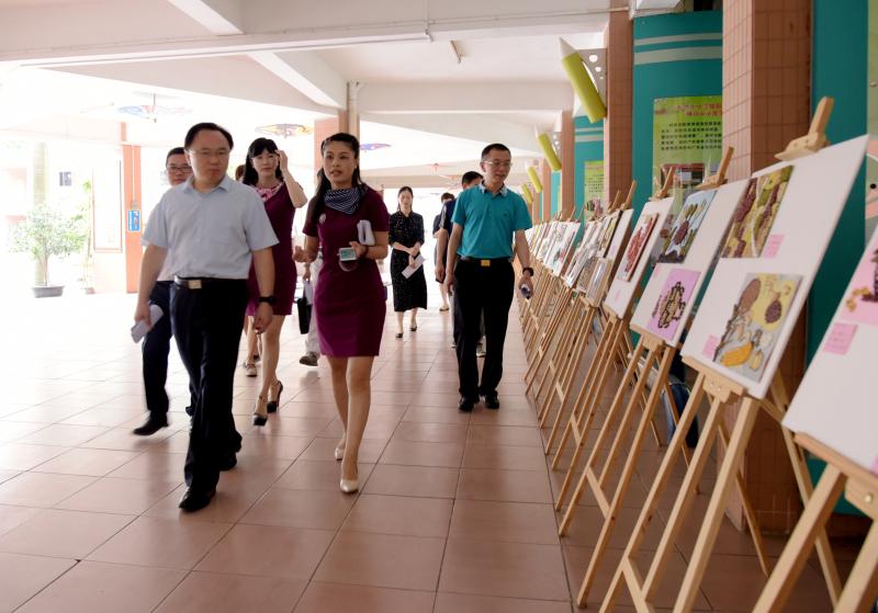 王副廳長等專家領導參觀、考察了我校的校園文化建設、集團辦學特色介紹等情況。吳副校長等行政一邊指引來賓參觀,一邊向大家介紹學校的校園文化特色,并闡述了學校的綠色教育理念和集團化辦學的成效。吳副校長介紹說,在順德區全面推進教育綜合改革大背景下,在大良街道教育改革的正確指引下,作為百年名校的西山小學,于2016年11月成立了西山教育集團。迄今,西山教育集團有多種辦學模式,有同一法人的西山小學兩校區,有兩所不同法人的成員校,還有一所跨鎮街品牌輸出的學校,共五所學校組成。集團核心校――西山小學,在集團教育發展中,以其自身優質教育品牌更好地在區域內發揮輻射示范作用,其優質師資資源和專業功能場室進行集團共享,各成員校都得到了極大的發展,教育教學成績顯著提高,師生素養全面提升,在順德區辦學績效評估中都評為了A級,也均被評為“順德區先進學?!?,全力推動了順德區均衡優質教育的教育教學質量邁向新臺階。