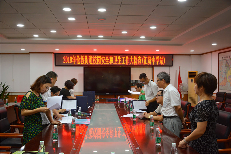 2019年6月11日上午,倫教街道校園安全和衛生工作檢查組蒞臨匯賢中學檢查指導工作。