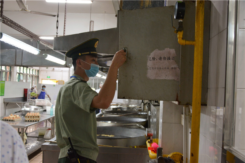 檢查人員先后巡視了食堂、宿舍、微型消防站等重點區域,仔細詢問并檢查了宿舍日常消防設施設備配置、校舍安全、安全保衛、食堂人員衛生、環境衛生、食品安全管理制度、安全教育和安全規范制度的落實情況等。