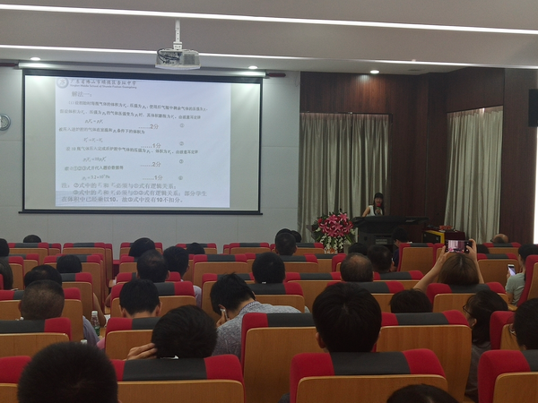 隨后,杏壇中學(xué)的謝秋菊老師作了《2019年高考理綜全國1卷第33題評卷情況及分析》的報(bào)告。謝老師通過詳實(shí)的數(shù)據(jù),典型的個(gè)例進(jìn)行了深層次的原因剖析。最后謝老師總結(jié)了16點(diǎn)建議,這給高三的復(fù)習(xí)備考以新的啟發(fā),讓與會(huì)老師受益匪淺。