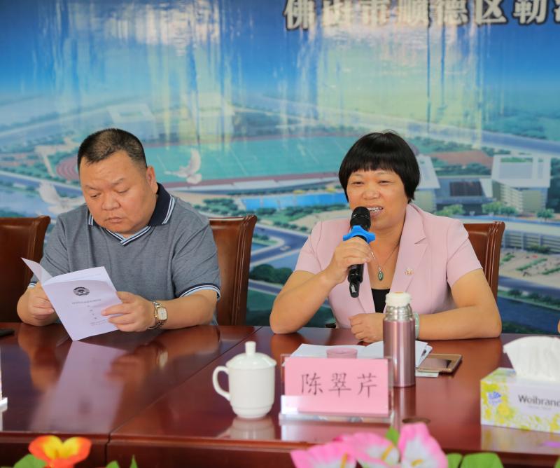隨后一行人在學校二樓會議室座談,羅勁柏副局長首先做了順德職業教育發展的經驗介紹。他說,順德職業教育起步比較早,為產業升級提供了人才支持。目前,順德共有13所中職學校,有3間國家級示范學校、7間國家級重點學校、3家省重點學校。得益于“一鎮一品牌”的特色,除了兩間區屬學校,每個鎮街都有一間職業學校,占地比較大,經費的支持基本都對等。隨著順德產業升級的不斷變化,順德職業教育的改革也不斷加強,不斷創新職業教育體制機制,2017年開始實施集團化改革,以推動順德職業教育新一輪的發展,創造更多的資源,推動產教融合,吸引企業主動參與到職業教育中,為職業教育提供真實的生產環境。