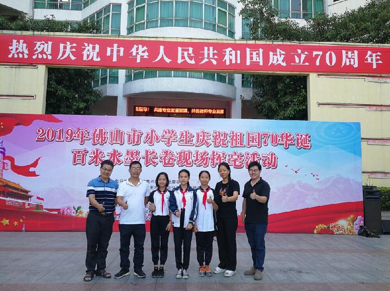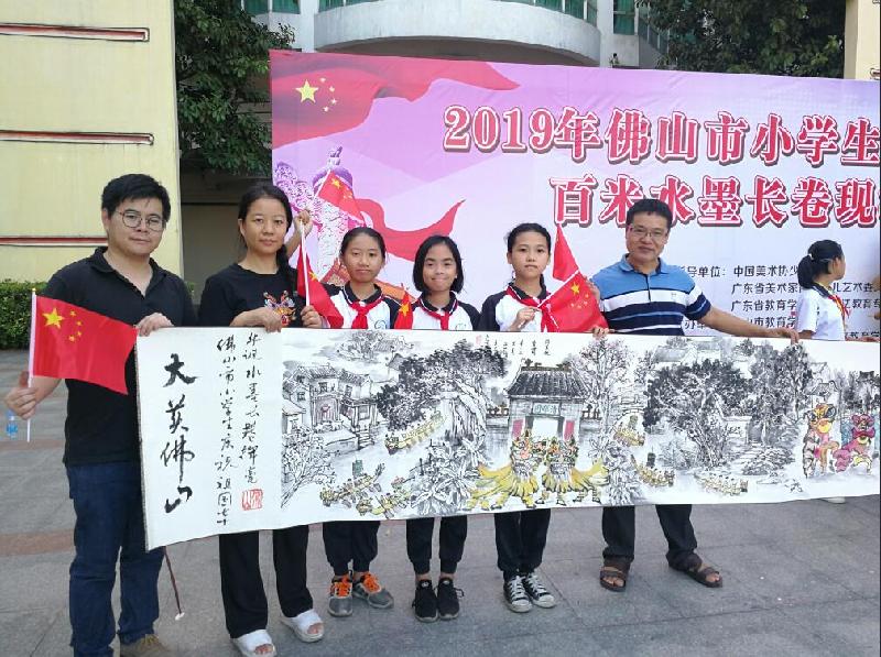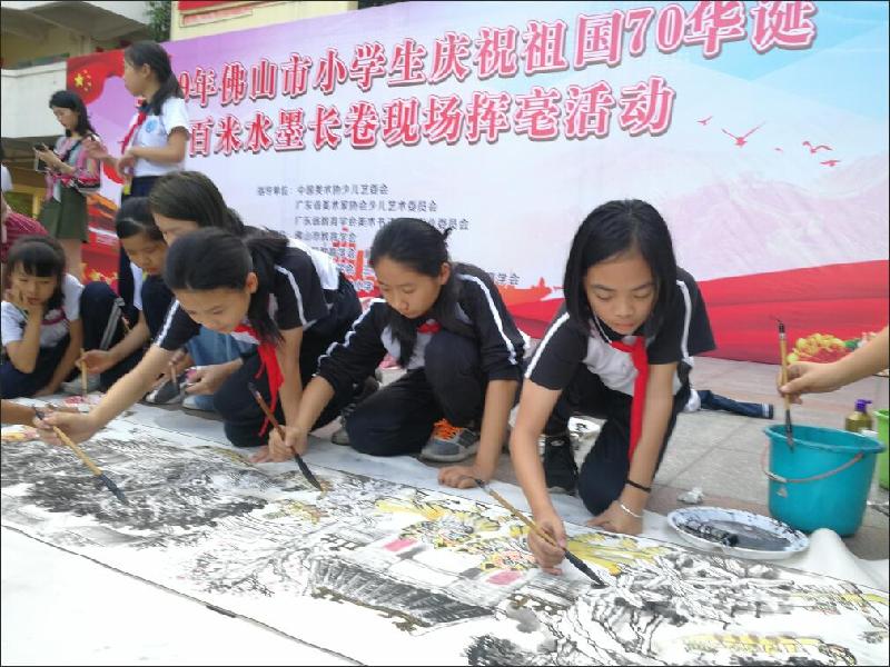 2019年10月16日下午,佛山市小學(xué)生慶祖國70華誕百米水墨長卷現(xiàn)場揮毫活動在佛山南海石門實驗小學(xué)舉行。本次活動旨在引導(dǎo)廣大少年兒童以實際行動向偉大祖國70周年生日獻禮,是進一步落實習(xí)總書記關(guān)于學(xué)校美育工作的重要指示和充分展示我省學(xué)校美育成果,促進兒童水墨教學(xué)工作再上新臺階的重要契機。通過本次活動,學(xué)生接受了愛國主義教育,激發(fā)了愛國熱情。