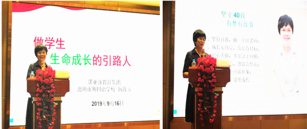 開班儀式結束后,惠州市外國語學校校長何汝玉老師帶來了《做學生生命成長的引路人》專題講座。她通過講述自己的個人成長以及從教40載中3個典型的案例:挽救一名自殺的女孩、妥善處理班級的偷盜事件、校園衛生整治工作,向學員展示了一名德育工作者的情懷,啟迪班主任應該用愛喚醒孩子的美好人性。