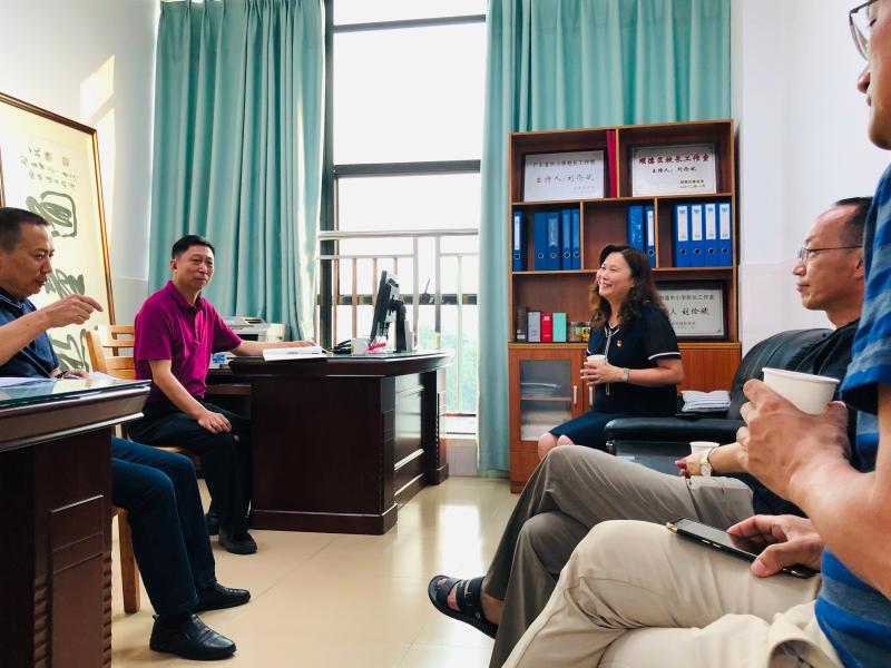 2019年9月19日,容桂街道教育局常務副總監余錦團,基礎教育股股長胥執純蒞臨指導,劉倫斌校長代表容桂育美教育集團向領導匯報辦公室近期工作,并就集團化辦學進行了多方位的交流。