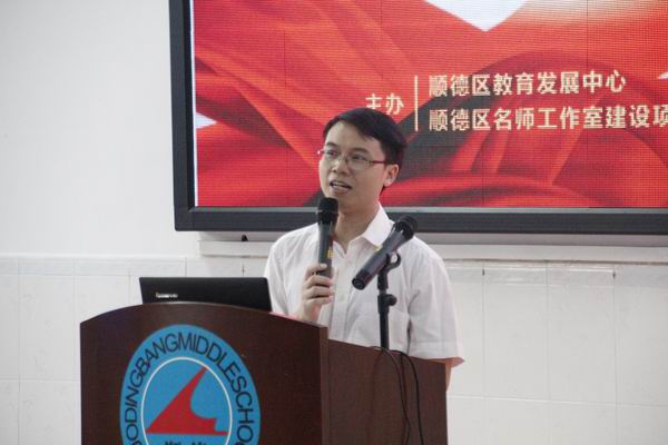 順德區羅定邦中學的熊文華校長代表學校致歡迎辭。順德區教育發展中心教師發展研究室唐信焱主任作動員講話,號召到場的老師們借力前輩資源,促進自我成長,實現自我價值。