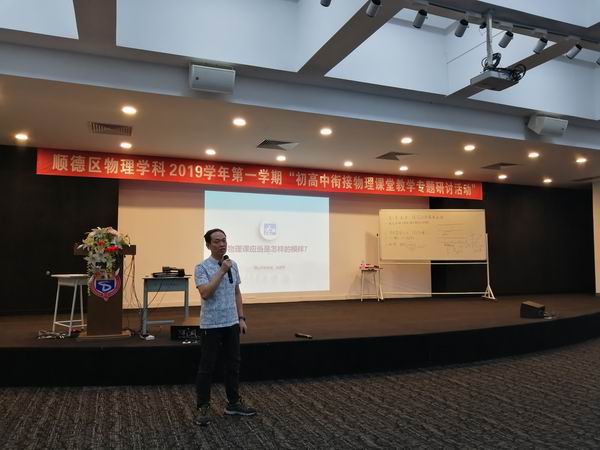 9月18日,順德區物理學科“初高中銜接物理課堂教學專題研討活動”在廣東順德德勝學校順利開展,參加活動的人員有佛山市教研室物理教研員朱建平教授、順德區教育發展中心教研室任富華副主任、100多位初高中物理教師?;顒佑身樀聟^物理教研員周璐老師主持。