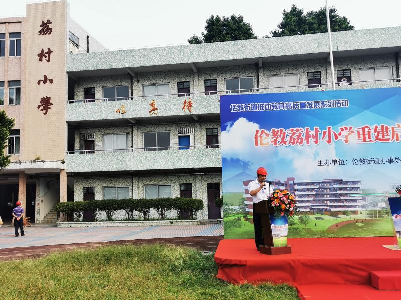 重建啟動儀式上,荔村小學校長郭智鷹向與會來賓介紹荔村小學的辦學歷史和辦學業績,字里行間表達了政府和港澳鄉親情系教系,興教助學壯舉的感激之情。街道黨工委書記盧德全發表了熱情洋溢的致辭。他表示倫教堅持教育“一把手工程”,主動履行發展教育的職責,奮力推進十億教育建設工程,推動教育高質量發展;進一步深化教育改革,激發辦學活力,打造倫教教育品牌,大力提升教育質量。他還表示倫教將動員全社會力量,關注支持教育事業發展,以教育高質量發展助推城市高質量發展。他要求相關部門通力合作,按計劃、高標準、快速度地推進工程建設,確保新校園如期建成并投入使用。他希望學校在傳承學校優良傳統的基礎上,重新定位,科學謀劃,將荔村小學打造成順德區內標桿小學。