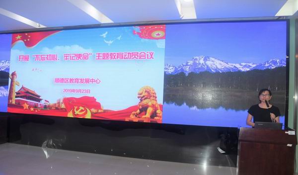 9月23日下午,區教育發展中心在一樓報告廳順利召開“不忘初心、牢記使命”主題教育動員會。會議由辦公室陳萍主任主持,各支部黨員、全體教職工參加了會議。