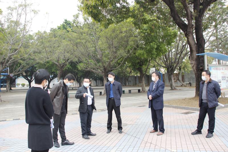 2020年2月11日上午,在新型冠狀病毒感染的肺炎疫情嚴峻形勢下,順德區政府蔡偉副區長、區教育局溫聯洲副局長蒞臨羅定邦中學,督導檢查我校疫情防控、線上教學、開學準備等工作安排,全體學校行政陪同。