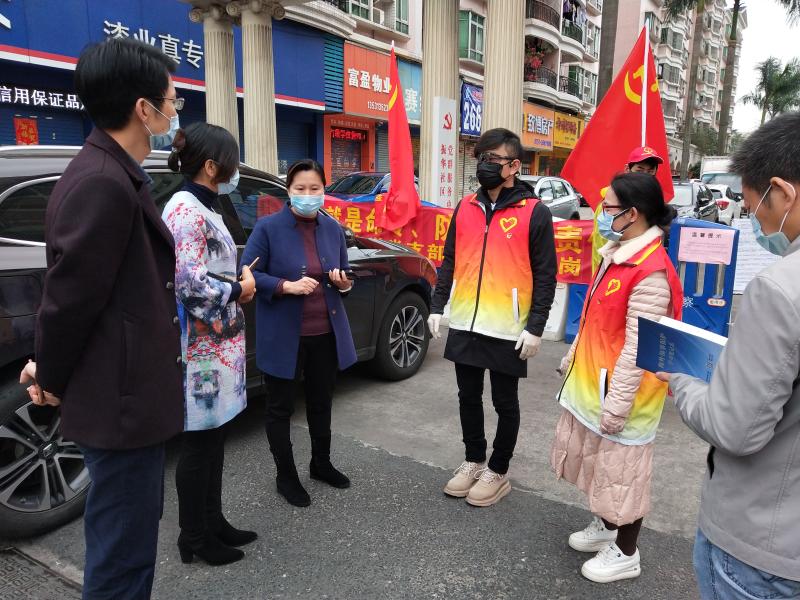 為了感謝志愿者們的辛勤值守,了解教師黨員志愿者的工作情況,2月10日上午,順德區教育局副局長冼彌冬女士,劉進華科長以及容桂街道黨工委委員、容桂教育局長歐陽雪喬女士等領導來到容桂康富小區容桂小學教師黨員志愿服務崗,慰問了在門崗值守的學校教師黨員志愿者和家長義工志愿者。