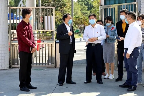 區(qū)長(zhǎng)彭聰恩(左起三)到江義中學(xué)指導(dǎo)疫情防控工作