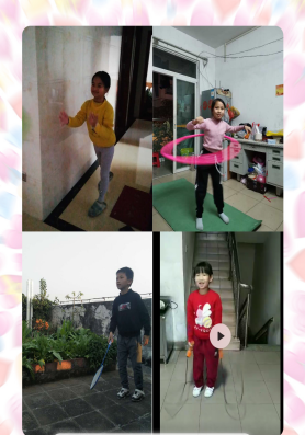 疫情面前,每天的鍛煉不可少,少年強,則國強。孩子們的居家鍛煉活動可豐富啦:學習體育老師布置的五步拳、跳舞、轉呼啦圈、打羽毛球、做瑜伽......