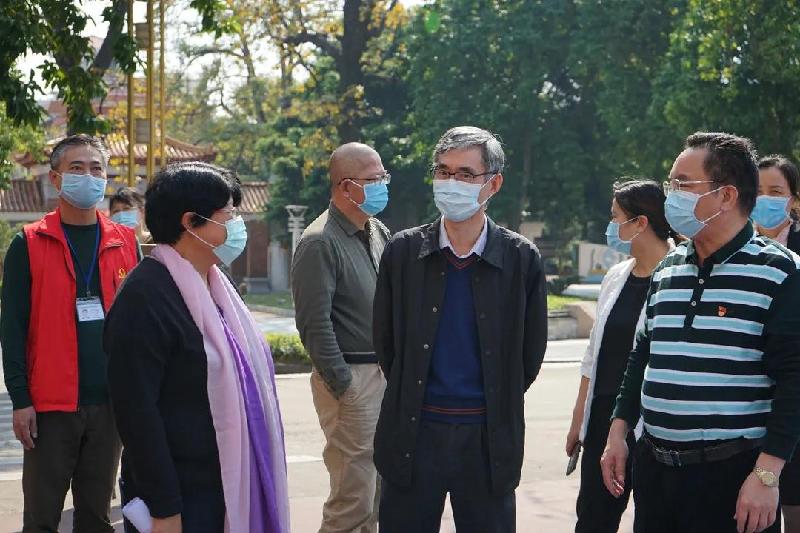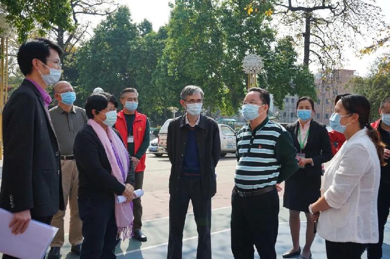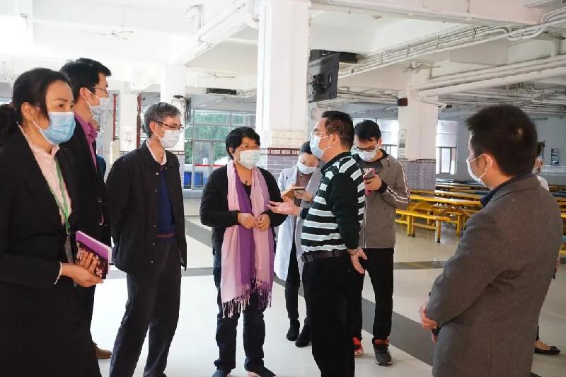 順德區副區長、容桂街道黨工委書記劉國興(右3)等領導到容山中學檢查疫情防控工作