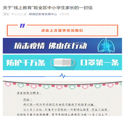 發布《關于“線上教育”致全區中小學生家長的一封信》