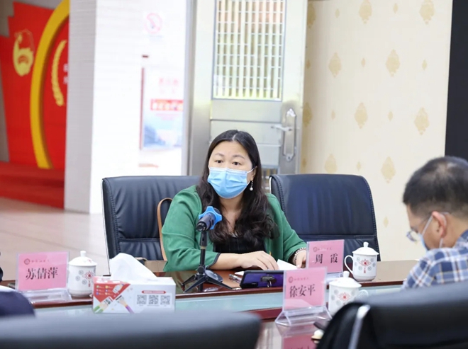 江義中學副校長周霞以《網絡智慧課堂同心助力中考》為主題就初三級線上教學精準備考情況進行匯報。匯報中周霞以“提前規劃整體部署、廣泛參與深度跟進、網絡教研同心助力、穩住效果不斷提升”四個維度解讀了江義中學初三級分層走班教學實現了因材施教、家校合作齊抓共管、目標驅動隔空跟進的三大優點。