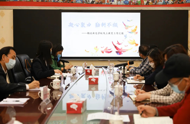 3月17日,順德區教育發展中心黃晨曦副主任一行來到江義中學調研督查勒流街道疫情期間在線教育工作,勒流街道教研室副主任朱湘紅匯報了疫情期間街道開展線上教學工作的情況,黃晨曦副主任充分肯定了勒流街道的工作,并提出要做到實事求是、與時俱進,保障線上教學效果最優化。