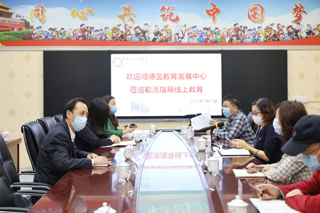 3月17日,順德區教育發展中心黃晨曦副主任一行來到江義中學調研督查勒流街道疫情期間在線教育工作,勒流街道教研室副主任朱湘紅匯報了疫情期間街道">