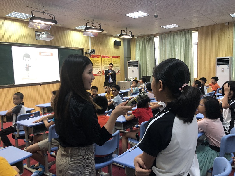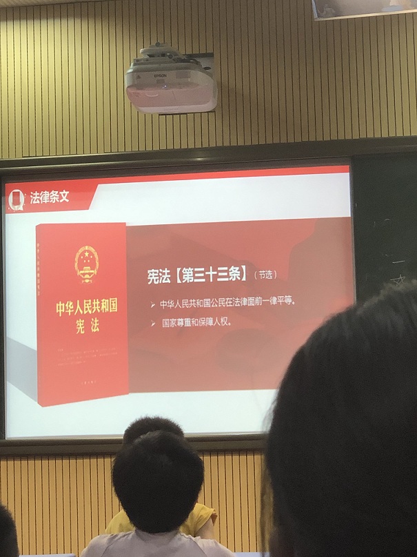 在此次課堂過程中,律師們用幽默風趣的語言吸引了孩子們的注意。采取用問題引導孩子們的方式,漸漸地引領孩子們進入法律的殿堂之中,最終莊嚴地走到憲法面前,首先,律師們通過詢問孩子們對于法律的了解程度、對于憲法規定的基本權利的種類以及對于其他下位法如刑法具體的規定內容,逐步加深孩子們對于法律的知覺,從一開始的在遠方慢慢走近,最后真正地感受到法律的關懷,通過這一個過程,相信法律不再像同學們一開始認為地遙不可及,而是時時刻刻圍繞在身邊并且無時無刻在保護著公民權利與自由。