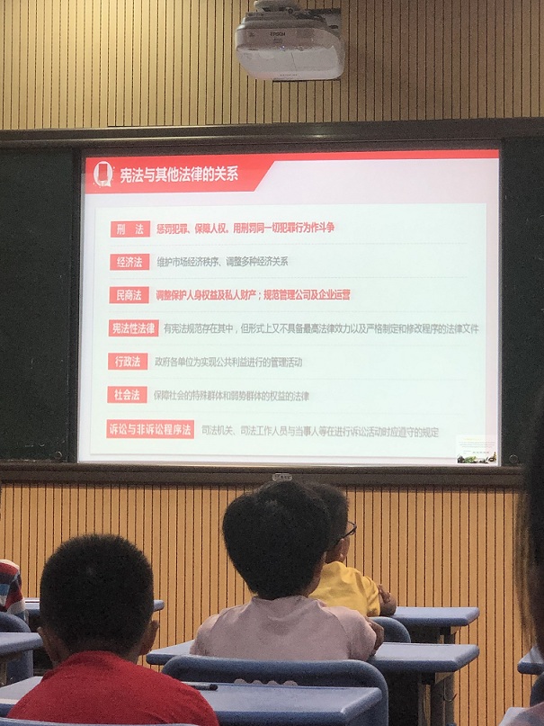 即便這一次講師的問題難度有所提升,在與同學們的互動環節中,同學們依然能夠在講師的提示下無限接近正確答案,并且同學們絲毫不畏怯高難度的問題,仍然能夠鼓起勇氣舉起手說出自己心中的答案,在未知面前,也應當充滿自信說出自己心中的想法和答案,這一次不僅僅是講師在灌輸給同學們憲法的知識,也是這些孩子們教會了人應當具備勇氣和信心去面對未知。